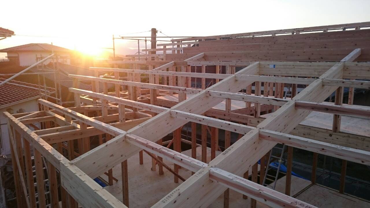 この梅雨の時期はお天気が気になります。F様のご家族の皆様はきっと、いや絶対に晴れ家族ですね(笑) 何故なら、めちゃくちゃ天気よくて気持ちの良い青空でした!(^^)! 天気にも恵まれ無事に棟上げ終わり感謝です。F様お疲れ様でした♪ そして来月構造内覧会を開催させて頂きます。今しか見れない構造を是非沢山の方に見学して頂けたらなと思います( *´艸`) 遊びに来て下さいね~♬